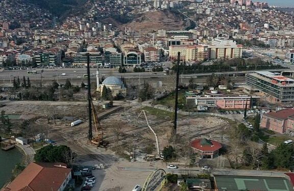 Kocaeli fuarı alanında imali devam eden İzmit millet Bahçesi projesi kapsamında fore kazık imalatları devam ediyor