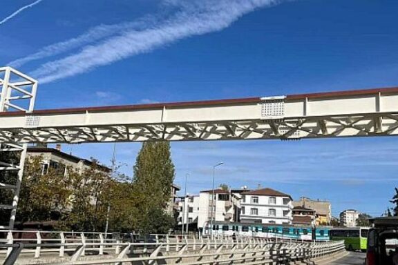 Büyükşehir tarafından Darıca Okul Yolu Caddesinde yapılan asansörlü çelik üstgeçidin yaya geçiş taban kısmında çelik tabliye montajı yapıldı …