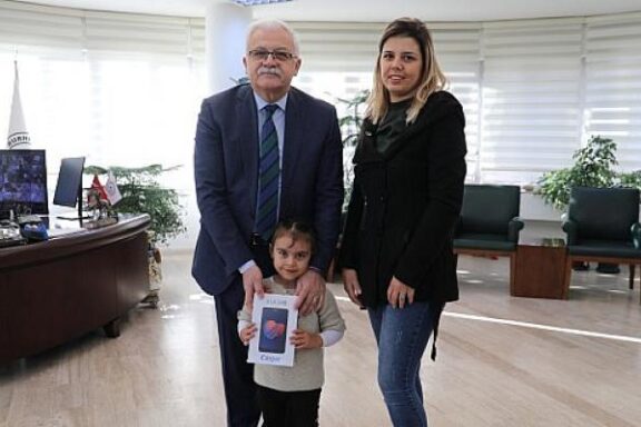 Burhaniye’de düzenlenen 29 Ekim kutlamalarında statta okuduğu şiirle herkesi kendisine hayran bırakan 4,5 yaşında ki Defne Yıkılkan’a, Belediye …
