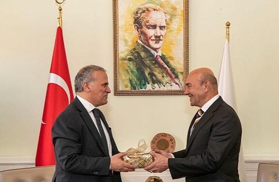 İzmir Büyükşehir Belediye Lideri Tunç Soyer, İtalya’nın Türkiye Büyükelçisi Giorgio Marrapodi’yi makamında ağırladı.