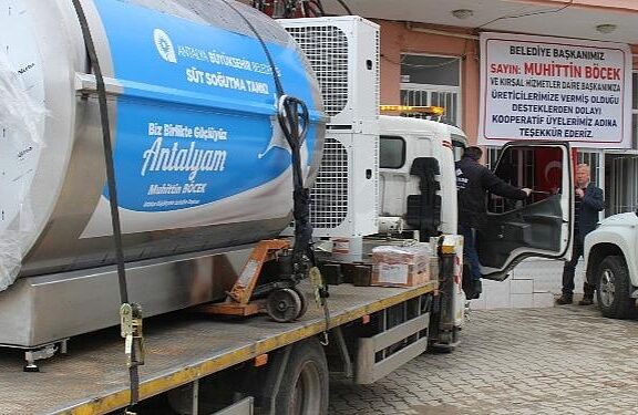Antalya Büyükşehir Belediyesi, Korkuteli Yelten Ziraî Kalkınma Kooperatif Başkanlığı’na 4 ton kapasiteli 2 süt tankı takviyesi verdi.