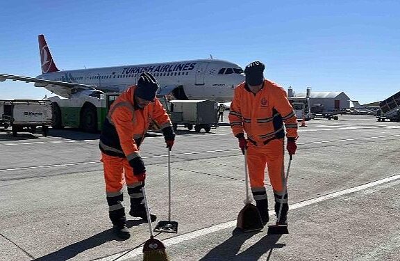 Zelzelenin en Fazla etkilediği yerlerin ortasında olan Adıyaman’da havalimanın paklığını Bağcılar Belediyesi yapıyor.