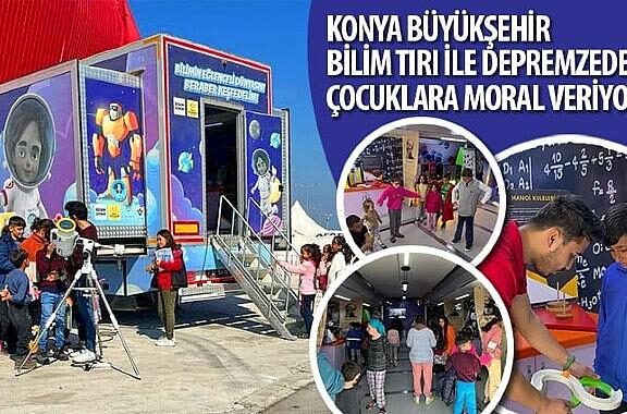 Öğrencilerin bilime olan merakını artırmak emeliyle Konya Büyükşehir Belediyesi Konya ilim Merkezi bünyesinde hizmet veren ilim TIRI, bu Defa Hatay’daki depremzede çocuklar için hizmet veriyor. Konya Büyükşehir Belediye Lideri Uğur İbrahim Altay, “Depremden etkilenen yavrularımıza yaşadıkları Aka kaygıyı bir nebze de olsa unutturabilmek için ilim TIRI’mızı bölgedeki çocuklarımızla buluşturuyoruz” dedi.