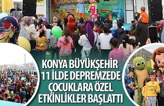 Konya Büyükşehir Belediyesi, zelzelesinin yaşandığı 11 vilayette afetten etkilenen çocuklara dayanak olmak hedefiyle Niloya ve Kukuli müzikalleri, ahşap ve seramik boyama, oyun parkurları üzere aktifliklerin bulunduğu programlar başlattı.
