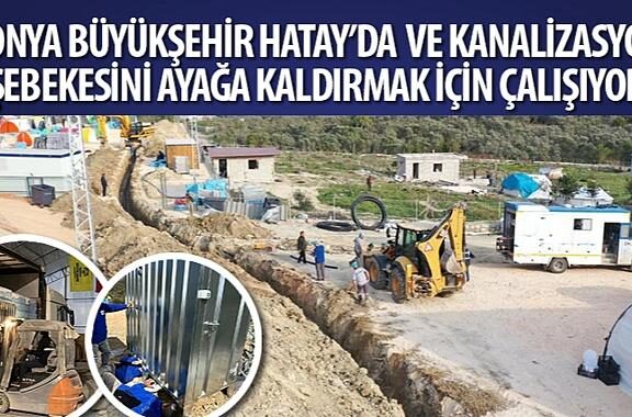 Konya Büyükşehir Belediyesi Hatay’da yürüttüğü altyapı çalışmaları kapsamında Defne İlçesi Dursunlu Mahallesi’ndeki çadır kentte sıfırdan 600 metre su, 400 metre kanalizasyon şebekesi yaptı, 200 metre yeni su şebekesi imaline devam ediyor.