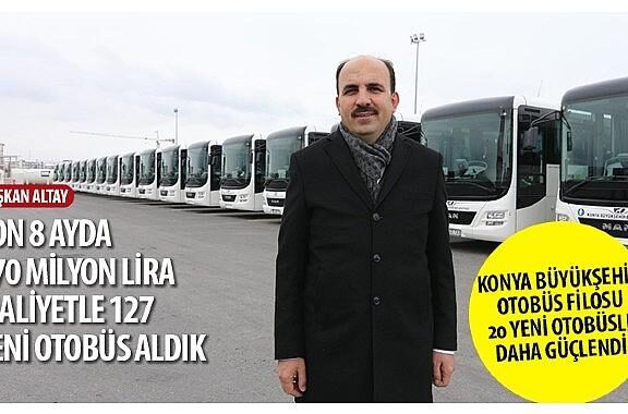 Konya Büyükşehir Belediye Lideri Uğur İbrahim Altay, Belde içi toplu ulaşımda kullanılmak üzere 20 yeni otobüs daha aldıklarını söyledi.