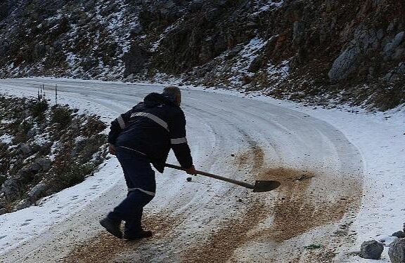 Antalya Büyükşehir Belediyesi, yağmur ve fırtınanın yanı Dizi yüksek kısımlarda tesirli olan kar yağışıyla da uğraş ediyor.
