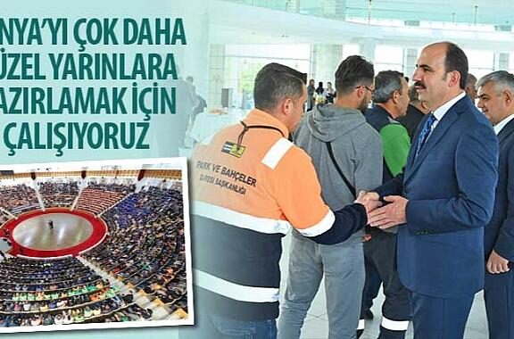 Konya Büyükşehir Belediye Lideri Uğur İbrahim Altay, Ramazan Bayramı dönüşü birinci mesai gününde Büyükşehir Belediyesi ve KOSKİ genel Müdürlüğü çalışanlarıyla bayramlaştı.