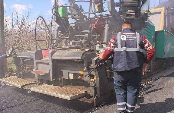 Antalya Büyükşehir Belediyesi, Elmalı Bayralar-Tekke Mahallesi irtibat yolunda sıcak asfalt çalışması başlattı.