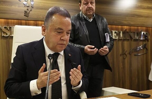 Antalya Büyükşehir Belediye Meclisi Şubat Ayı Olağan Toplantısı’nda zelzelede hayatını kaybeden vatandaşlar için hürmet duruşunda bulunuldu.
