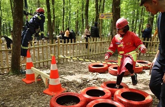 Büyükşehir tarafından düzenlenen 23 Nisan etkinliklerinde Kocaeli İtfaiyesi, AFAD, AKUT ve Kızılay vazifelileri afet farkındalığına dikkat çekiyor