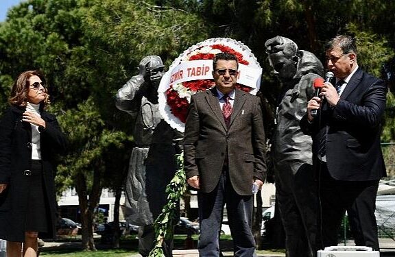 Karşıyaka Belediye Lideri Dr. Cemil Tugay, İzmir tabip Odası tarafından Covid-19 pandemisi sırasında ömrünü yitiren doktorlar ve sıhhat çalışanları anısına düzenlenen merasime katıldı.