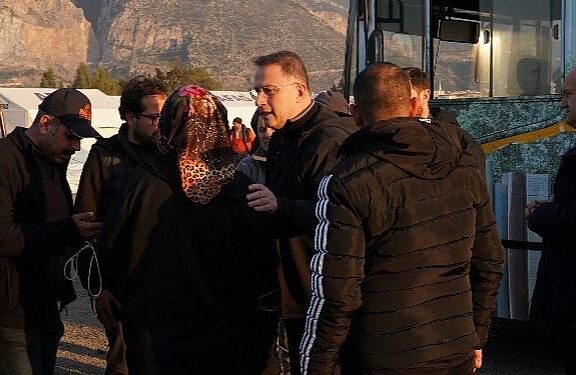 Kemer Belediye Lideri Necati Topaloğlu ve Kemer Belediye reis Yardımcısı Emin Gül, Kemer Bahri Tanrıkulu Spor Salonunda oluşturulan kriz masasında alınan kararlar sonrası salonda incelemeler yaparak Kemer’e gelen depremzedelerle Biricik tek ilgileniyor.
