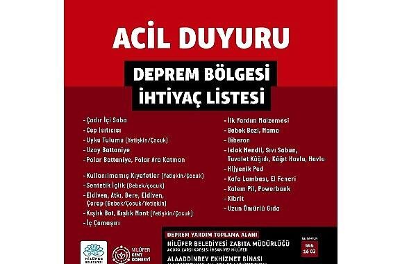 Nilüfer Belediyesi, Kahramanmaraş’ın Pazarcık İlçesi’nde meydana gelen 7.4’lük zelzele sonrası bölgeye ulaştırılmak üzere yardım kampanyası başlattı.