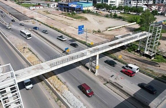 Köseköy Koridoru Alikahya Stadyum ilişki yolu çalışmaları kapsamında D-100 üzerine montajı tamamlanan üstgeçidin korkulukları yapılıyor