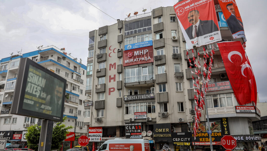 İYİ Parti Antalya Milletvekili Adayı Ayşen Kurt, MHP Muratpaşa İlçe Binası önüne “Sinan Ateş İçin Adalet Tecelli Edecek” yazılı reklam verdi.