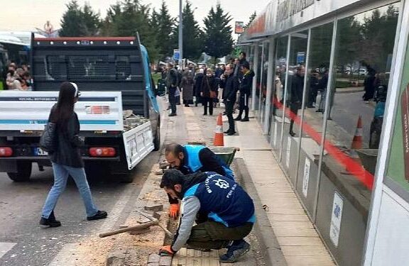 Büyükşehir Yol Bakım Timi, Kocaeli Üniversitesi otobüs durağına ulaşımın sağlandığı kaldırımda bulunan deforme olmuş engelli yolunun tamirini yaptı