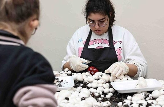 Kahramanmaraş’taki zelzeleden kurtulan ve İstanbul’da teyzesinin yanına yerleşen engelli Esmanur Karahan (16), Bağcılar Belediyesi Feyzullah Kıyıklık Engelliler Sarayı’nda eğitim alıyor. Karahan, engelli arkadaşlarıyla hasadını yaptığı 300 kilo mantarı zelzele bölgesindeki akranlarına gönderdi.