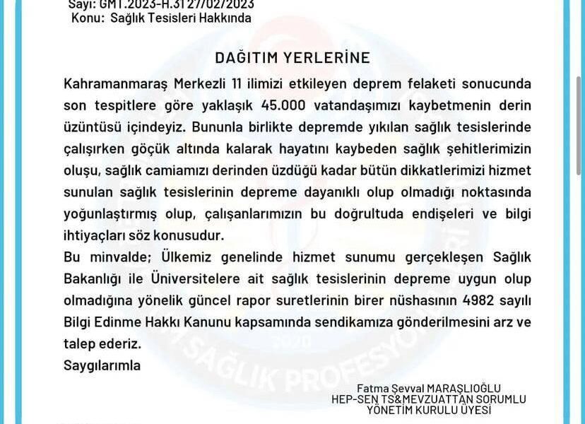 Hemşireler ve bütün sıhhat Profesyonelleri Sendikası (HEP-SEN) genel Merkezi, ülke genelinde hizmet sunumu gerçekleşen sıhhat Bakanlığı ile Üniversitelere ilişkin